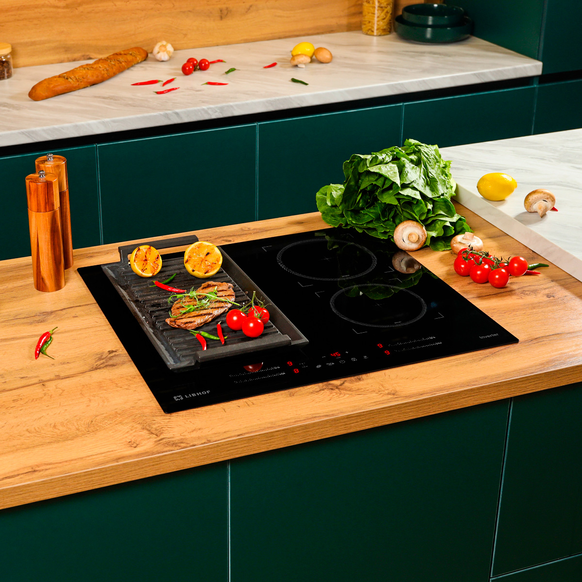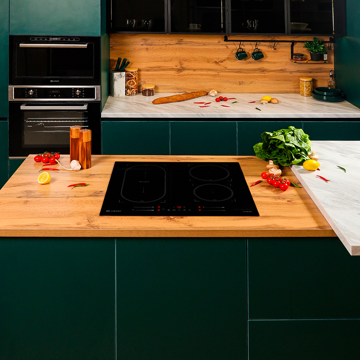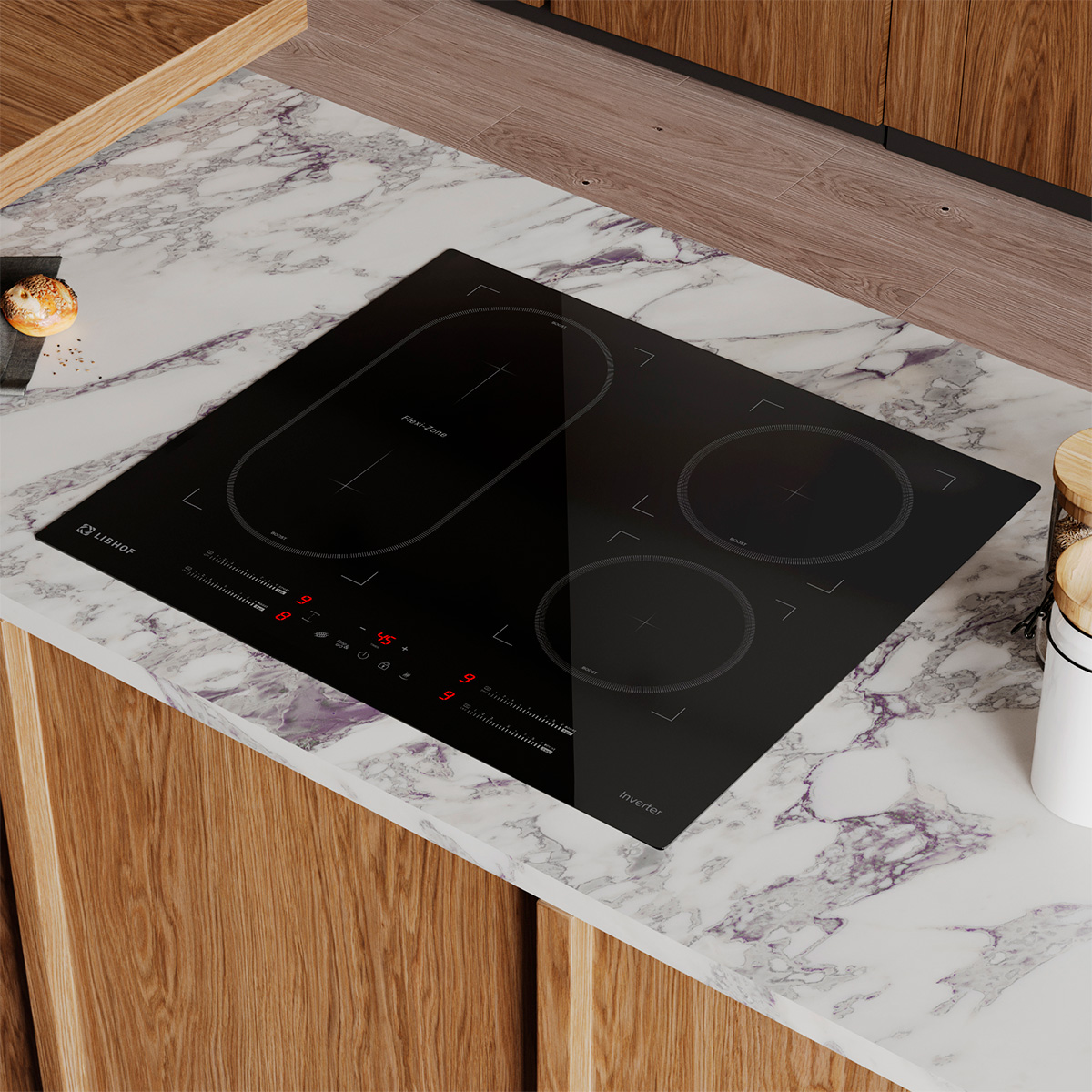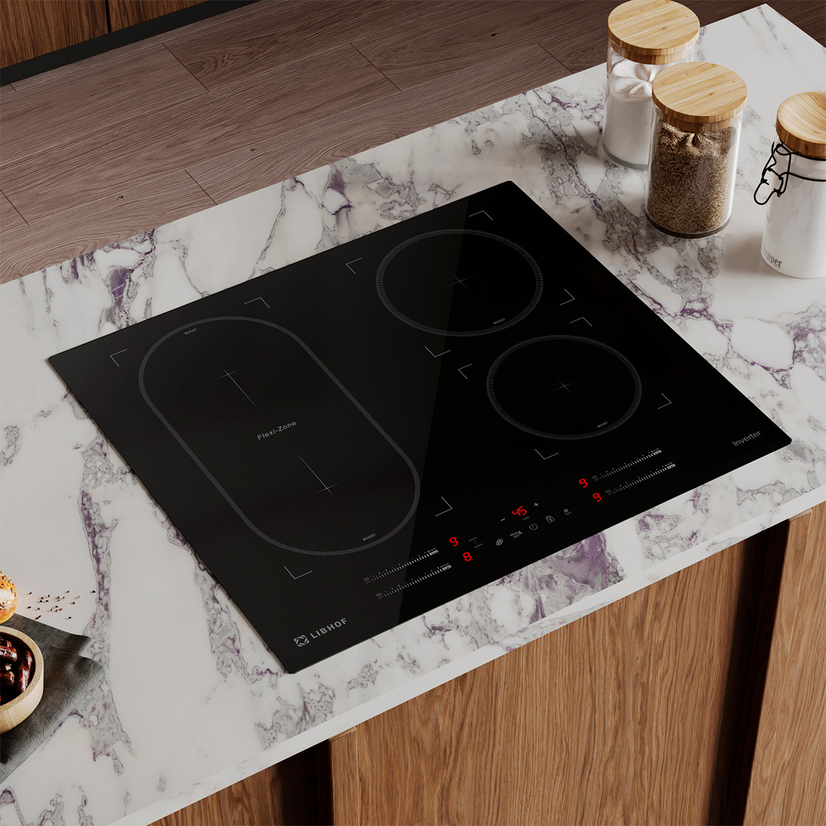 Варочная панель оснащена таймером на 99 минут с помощью которого можно контролировать время приготовления пищи. Индукционная варочная панель оборудована индикатором остаточного тепла, который показывает, какие зоны ещё горячие, что снижает риск получения ожогов. Благодаря функции защиты от проливания жидкости, при попадании воды на рабочую поверхность, конфорки автоматически отключаются, обеспечивая безопасность и предотвращая возможные повреждения. Еще одна система безопасности является, блокировка от детей, которая не позволяет маленьким детям включать и выключать варочную панель. Функция поддержания тепла у инверторной варочной панели позволяет сохранять установленную температуру на определенном уровне после завершения процесса приготовления пищи. Это удобно, если нужно поддерживать готовое блюдо теплым перед подачей на стол или разогревать его до нужной температуры. Сенсорное управление реализовано с помощью слайдера для каждой конфорки, что обеспечивает удобство и простоту регулировки температуры.
