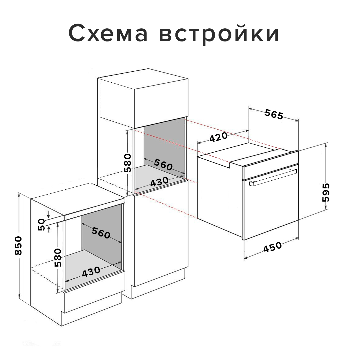 | Размер ниши для встраивания, мм |