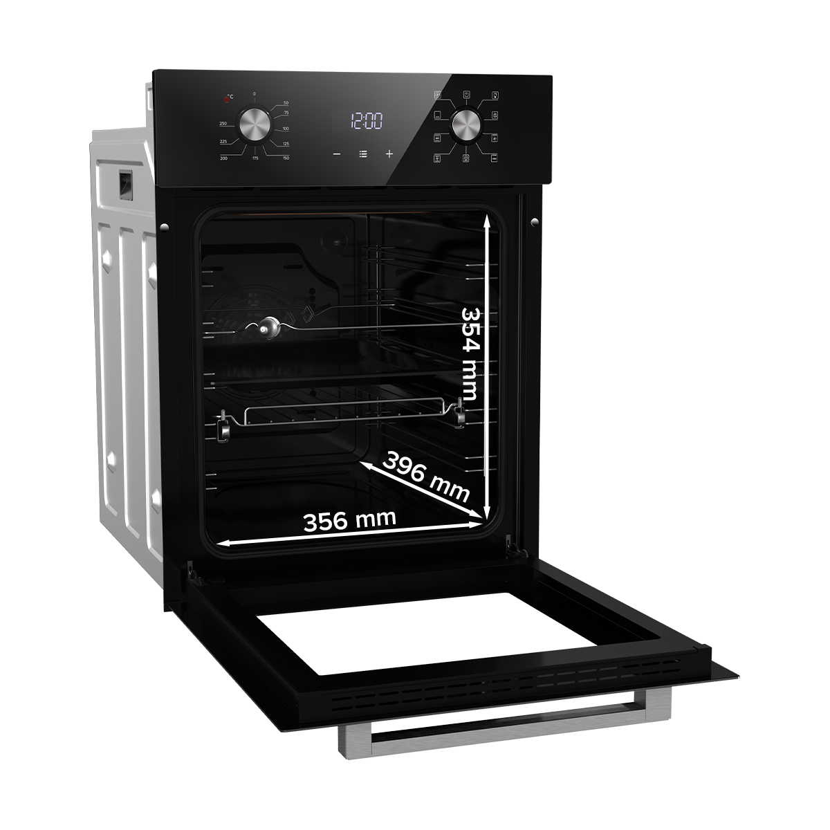 Встраиваемый духовой шкаф оснащен функцией блокировки от детей для безопасного использования, а также дисплеем с цифровым таймером для точного контроля времени приготовления.