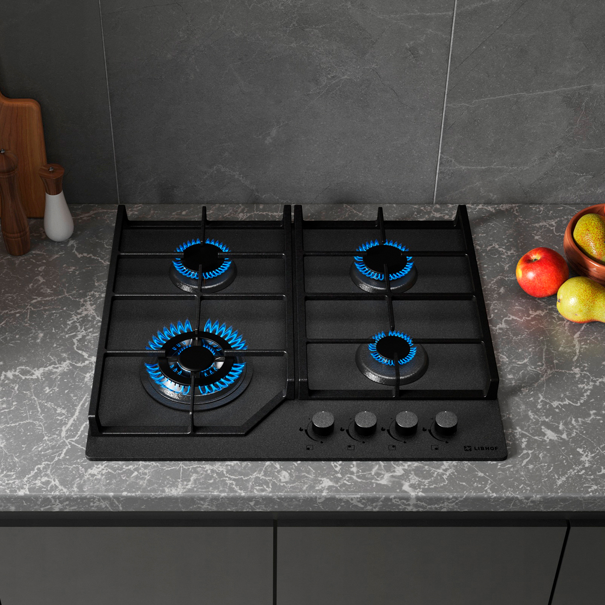 Встраиваемая газовая варочная панель Libhof GH-604 matt black объединяет элегантный дизайн, высокое качество и удобство в использовании.