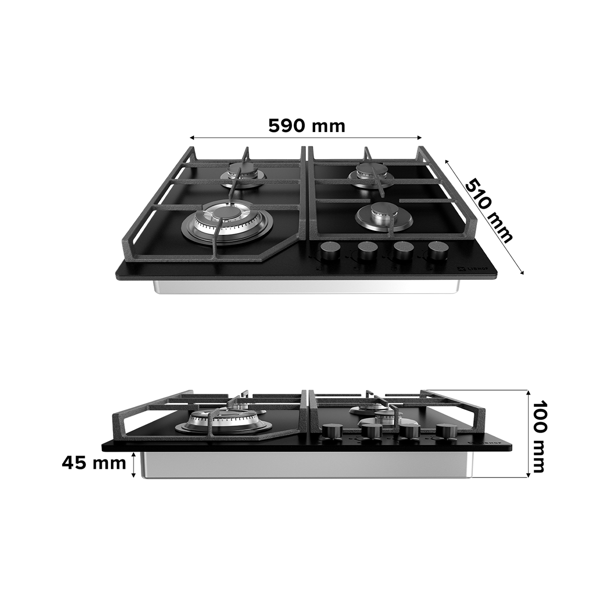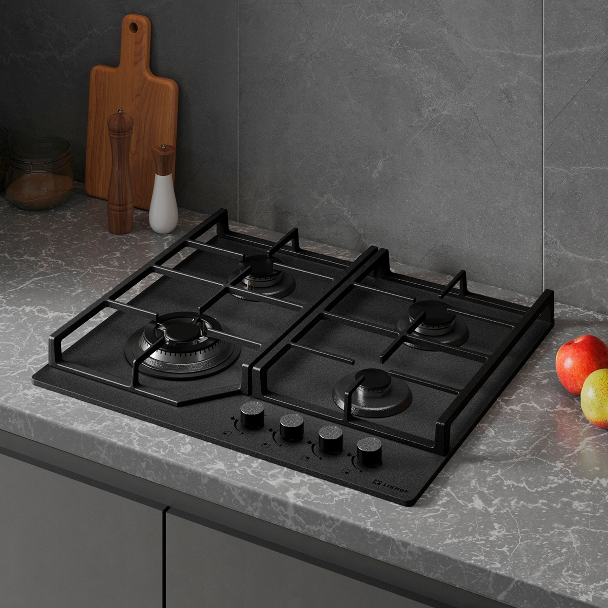 Газовая варочная панель на 4 конфорки Libhof GH-604 matt black объединяет в себе все необходимые функции для современной кухни.