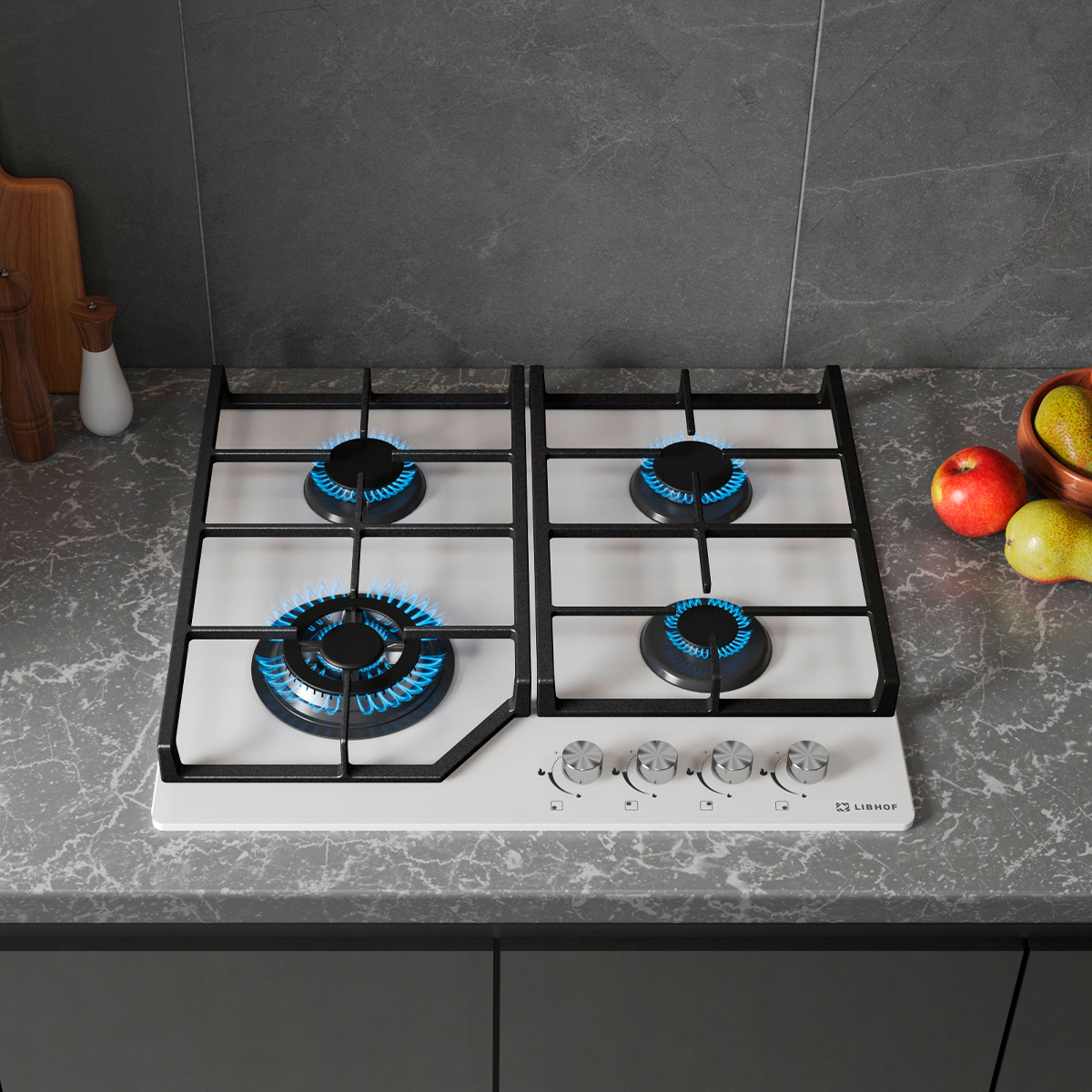 Газовая варочная панель на 4 конфорки Libhof GH-604 white объединяет в себе все необходимые функции для современной кухни.