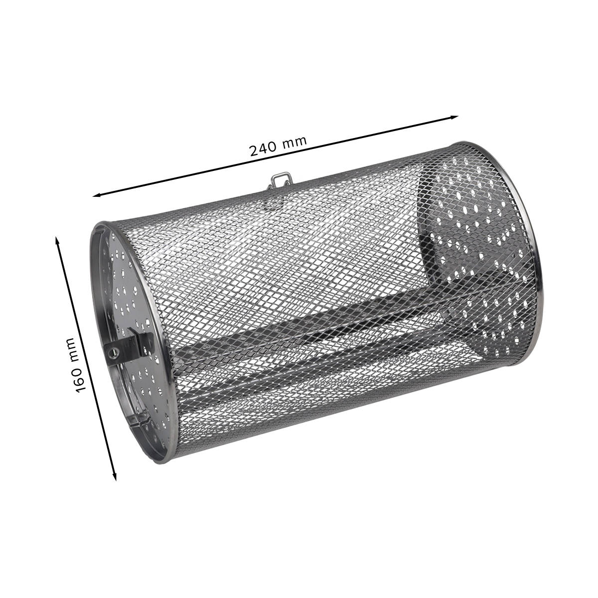 Вращающаяся корзина изготовлена из нержавеющей стали, которая долговечна и легко моется. В ней можно готовить полезные и вкусные блюда без масла.