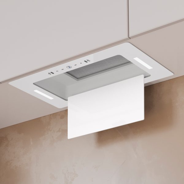 У вытяжки есть трехслойный жировой фильтр и два угольных фильтра, что обеспечивает высокий уровень очистки воздуха. Эта вытяжка для кухни не требует воздуховода, что делает её удобной для установки, особенно в небольших помещениях. Сенсорное управление и управление жестами упрощает эксплуатацию, а светодиодная подсветка создает комфортное освещение рабочей поверхности. Вытяжка имеет три скорости работы и таймер автоматического выключения от 1 до 9 минут, обеспечивая максимальную гибкость в использовании. Антивозвратный клапан предотвращает попадание воздуха назад в кухню.