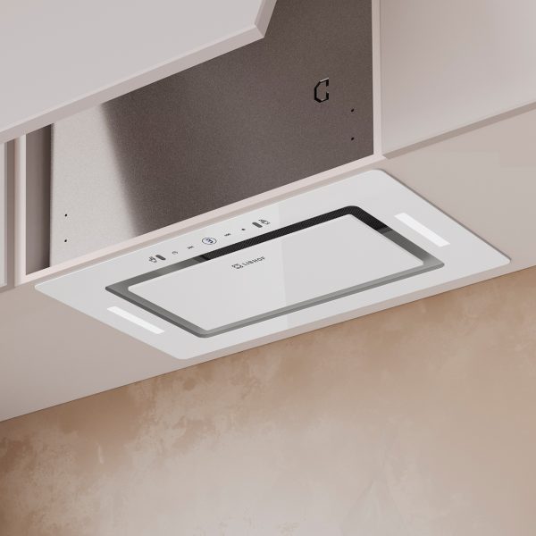 Вытяжка, встраиваемая в шкаф, выполненная в белом цвете, станет ярким акцентом и стильным дополнением к интерьеру кухни.