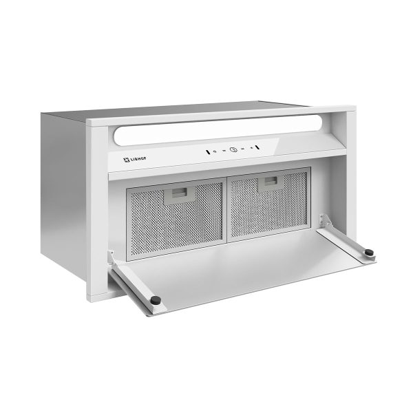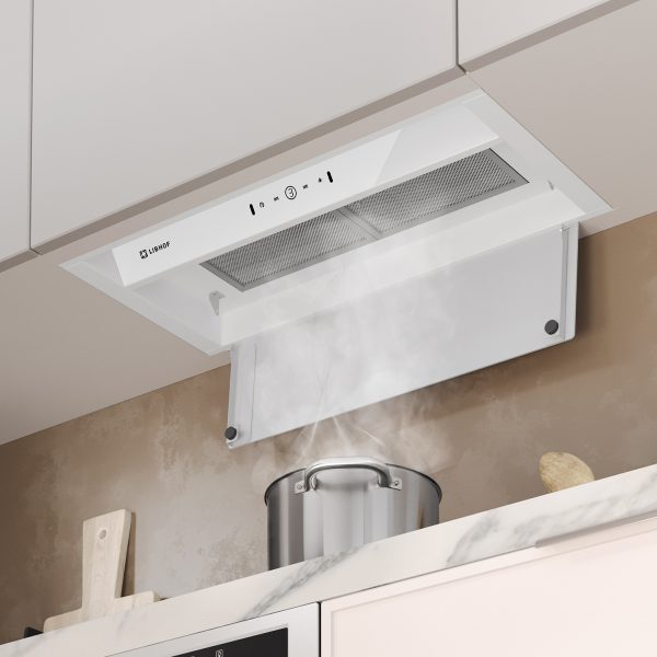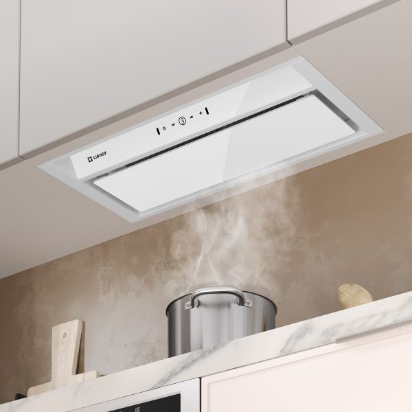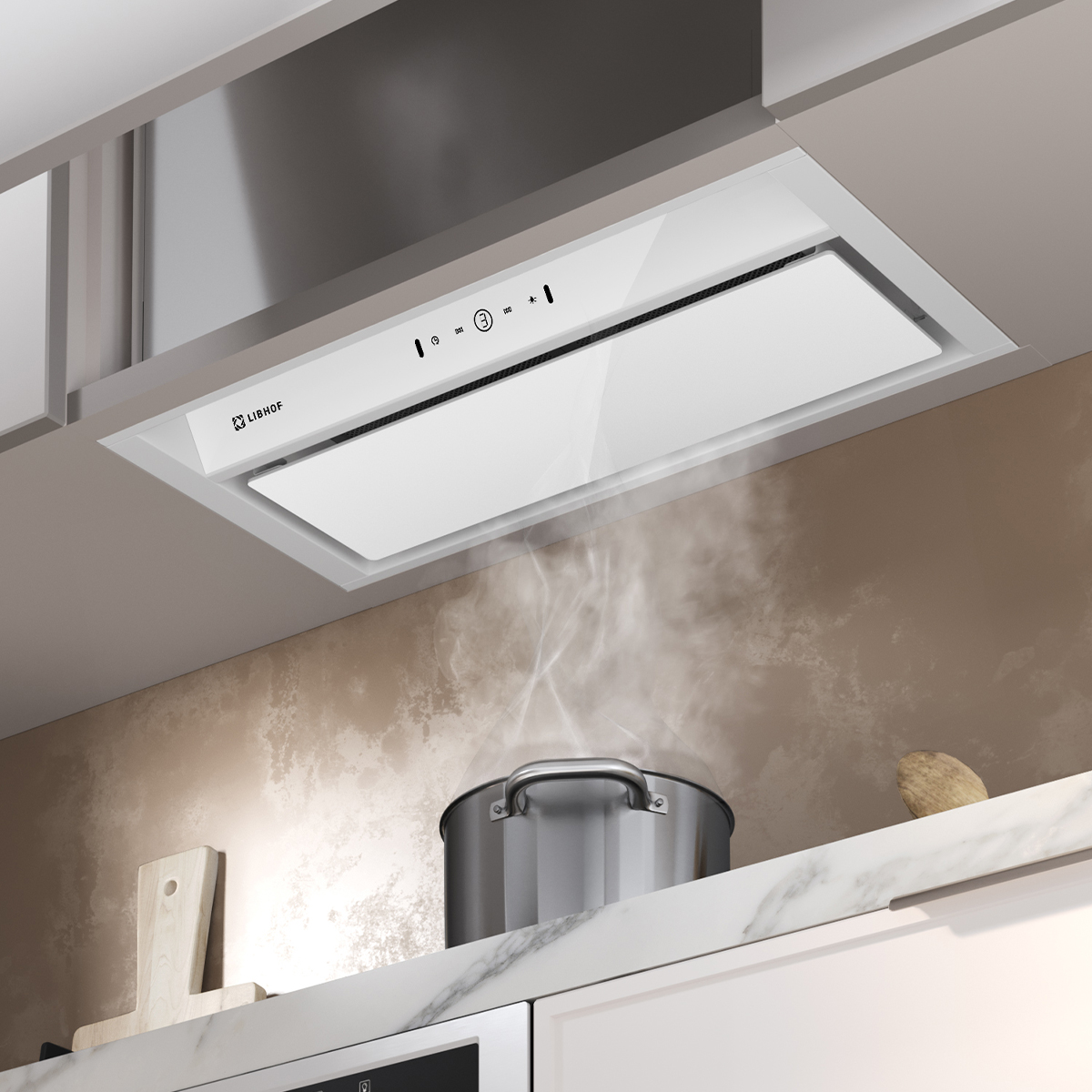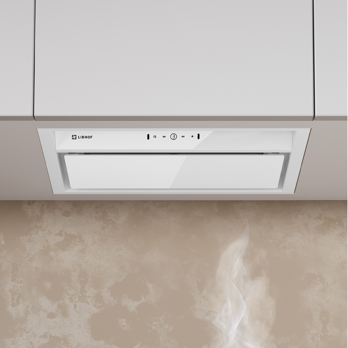 Стильная встраиваемая вытяжка 60 см шириной Libhof LB-3160 white идеально подходит для стандартной кухонной мебели и эффективно удаляет запахи и жир.