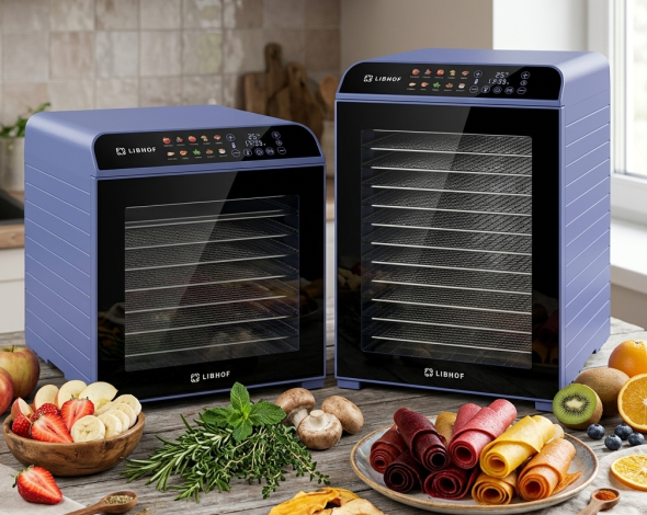 Бренд Libhof расширяет линейку кухонной техники, представляя две флагманские новинки — электрические сушилки FDF-14 и FDF-10 с автоматическими программами. Это универсальные устройства в эффектном фиолетовом корпусе, которые превращают заготовку продуктов в технологичный и эстетичный процесс.
