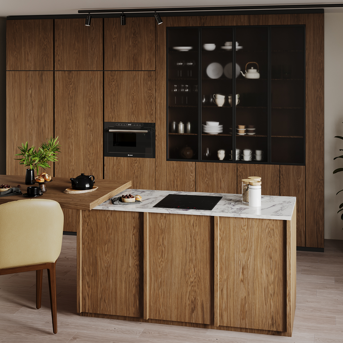 Стеклокерамическая рабочая варочная поверхность не только выглядит стильно, но и обеспечивает легкую очистку.
